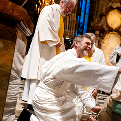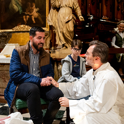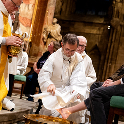 Die Geschichte vom Gründonnerstag sei eine hochaktuelle, erklärt Pater Jörg Thiemann CMM: "Am Gründonnerstag dürfen wir uns daran erinnern, dass Jesus auch uns die Füße wäscht. Das Waschen der Füße ist ein Symbol für den Dienst Jesu an uns. Jesus vergibt auch uns die Sünden. Wenn Jesus seinen Jüngern die Füße wäscht, auch dem Judas, dann zeigt er: Niemanden schließt er von seiner Liebe aus. Wir sind aufgefordert, genau so zu handeln. Jesus sagte: 'Wenn nun schon ich euer Meister und Herr euch die Füße wasche, dann müsst auch ihr einander die Füße waschen", erklärt Pater Thiemann die Symbolik der Fußwaschung am Gründonnerstag. Die Fußwaschung wird heute in allen Bischofskirchen durchgeführt, wo der Bischof zwölf ausgewählten Personen die Füße wäscht.
