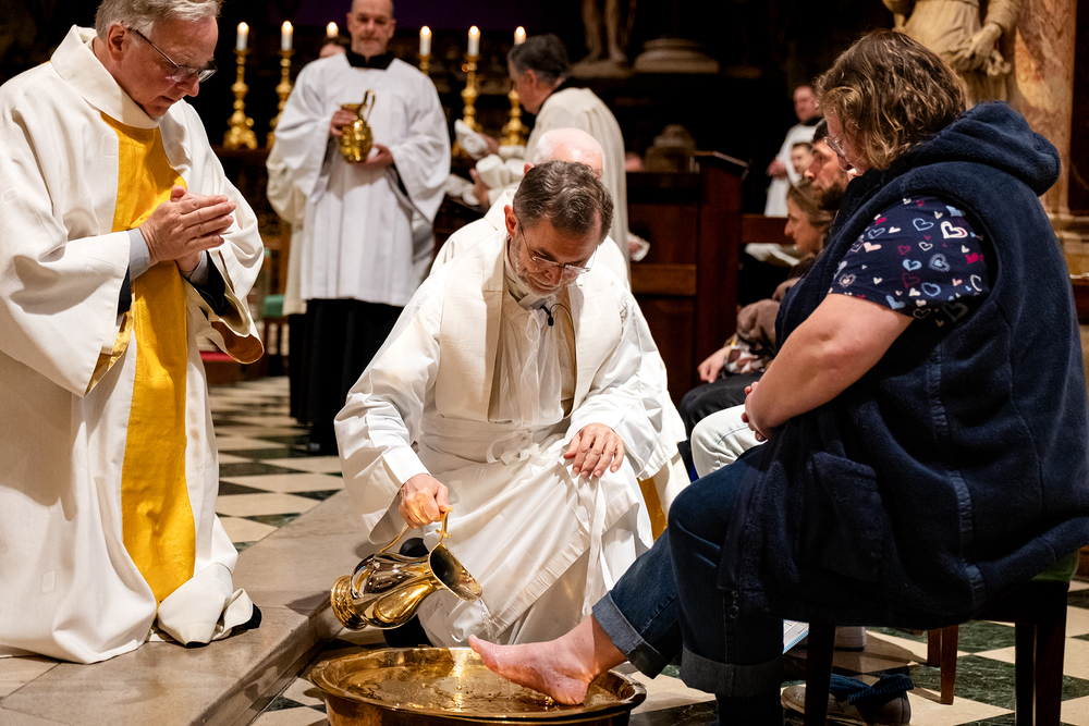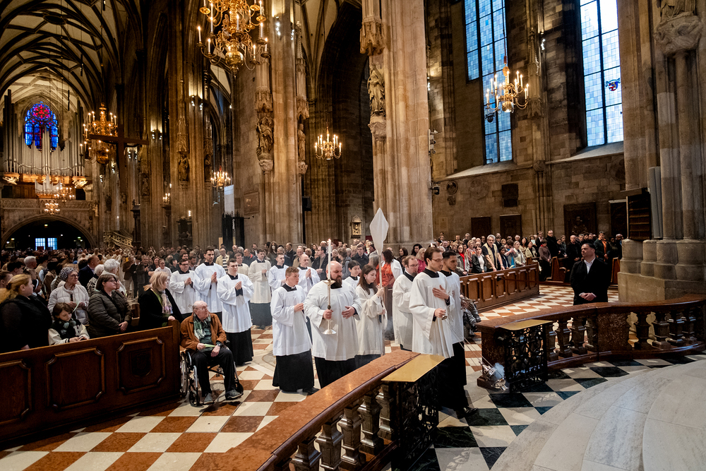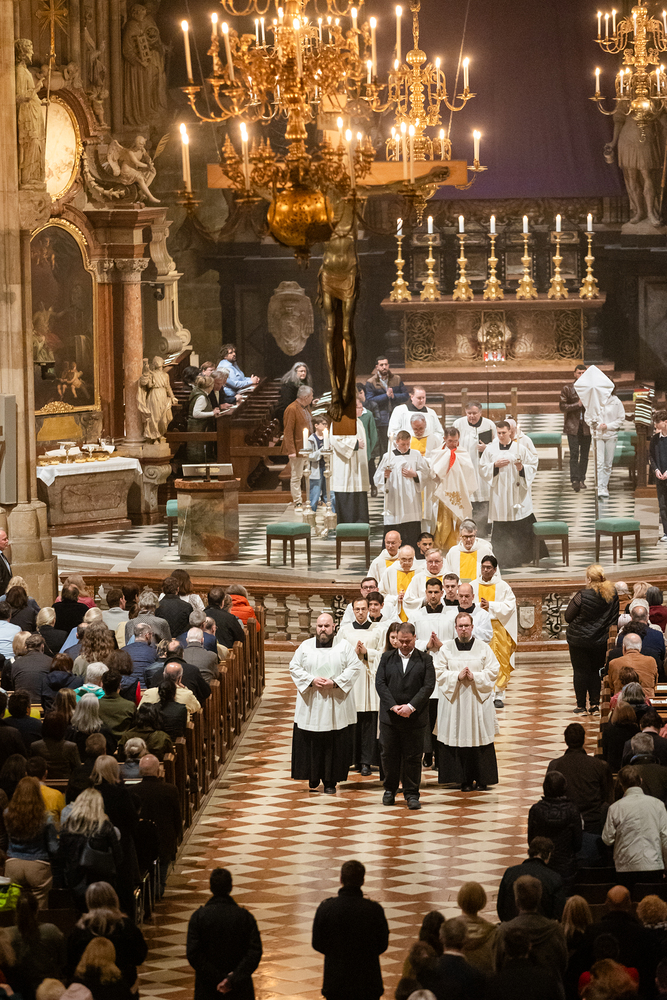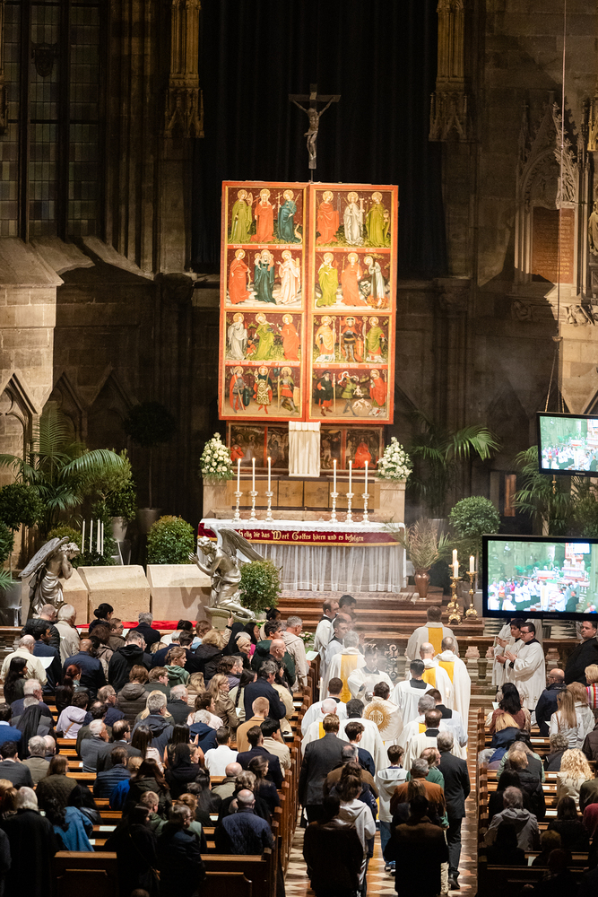 Die Feier am Gründonnerstag endet mit der Übertragung des Allerheiligsten, also den konsekrierten Hostien, an einen anderen Aufbewahrungsort, der Altar wird abgedeckt und die Gläubigen werden zur nächtlichen Anbetung eingeladen. Eröffnet sind damit die "Drei österlichen Tage vom Leiden, Sterben und Auferstehen des Herrn", Karfreitag, Karsamstag und Ostersonntag.