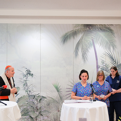Kardinal Schönborn segnet neues Kinderpflegedomizil "Fridolina" im Haus der Barmherzigkeit. Dieses bietet ein stationäres Pflegeangebot für chronisch kranke Kinder.