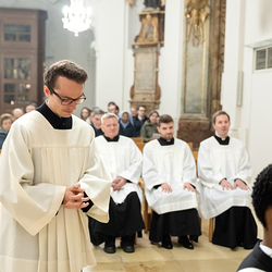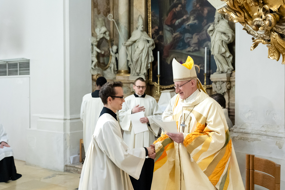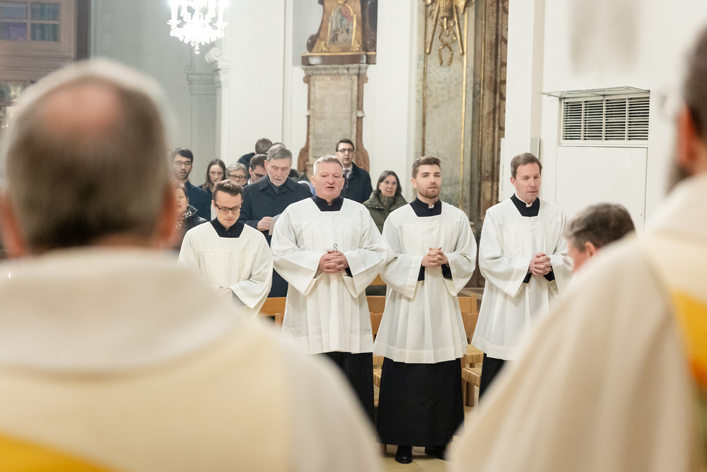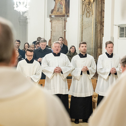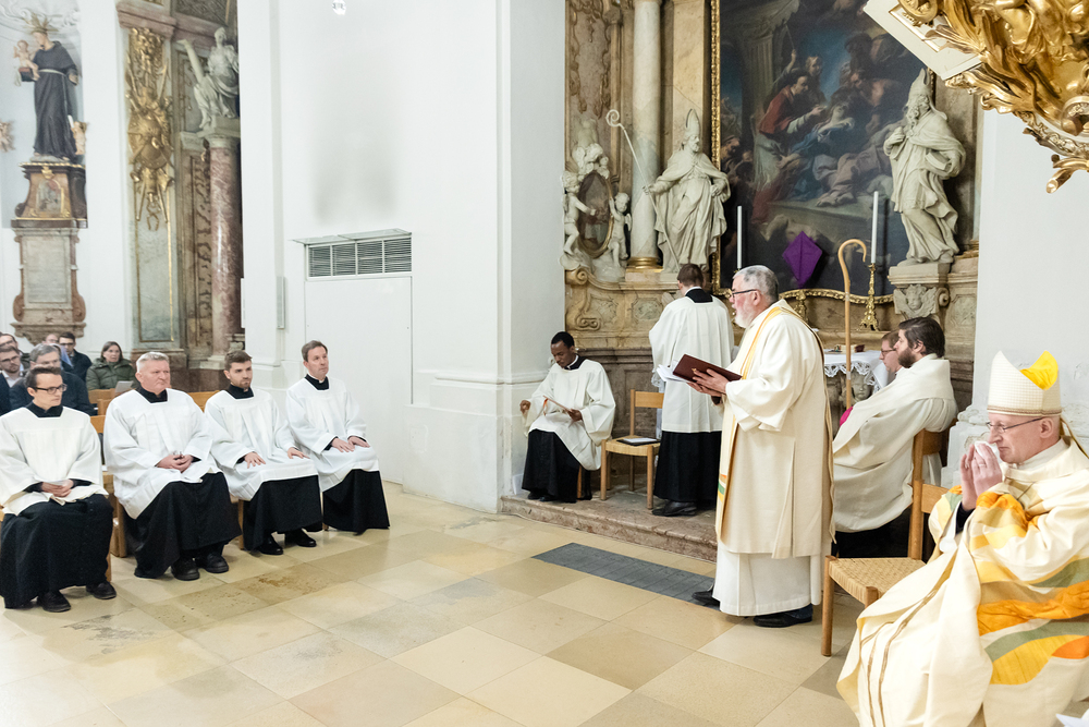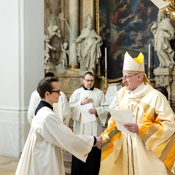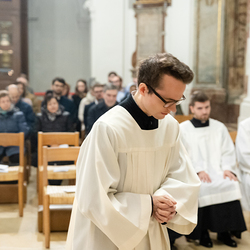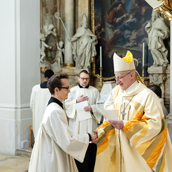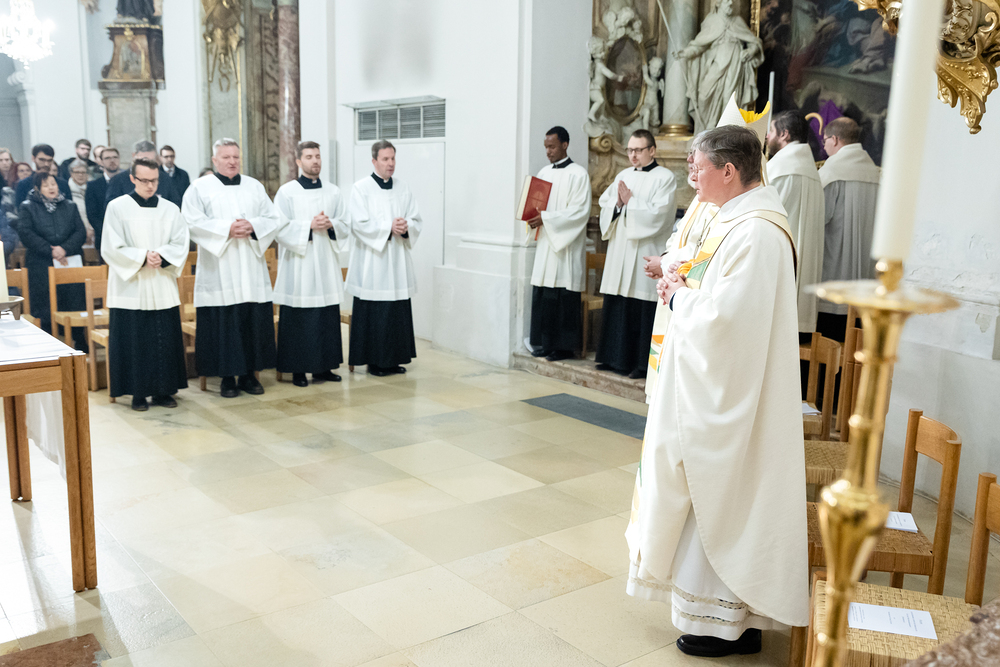 Im Rahmen einer Eucharistiefeier erhielten Seminaristen des Wiener Priesterseminars die Admissio, was "Zulassung" bedeutet.  Sie wurden offiziell als Kandidaten für das Weihesakrament anerkannt und bekräftigten ihre Bereitschaft, sich gewissenhaft auf den Dienst als Diakone und Priester vorzubereiten. Wir haben die Feier fotografisch begleitet.