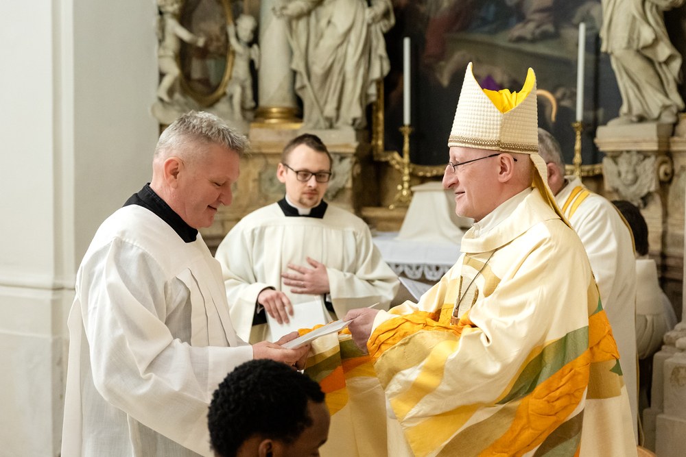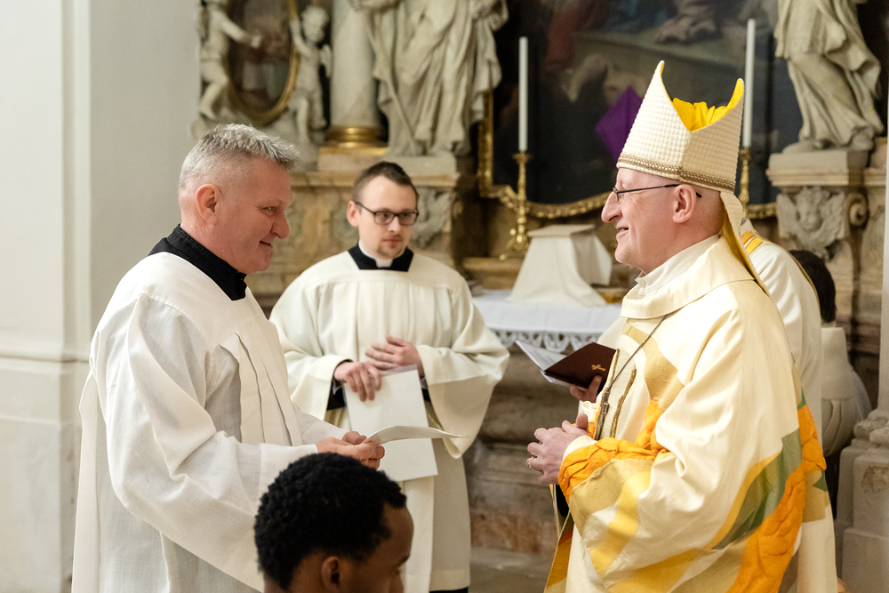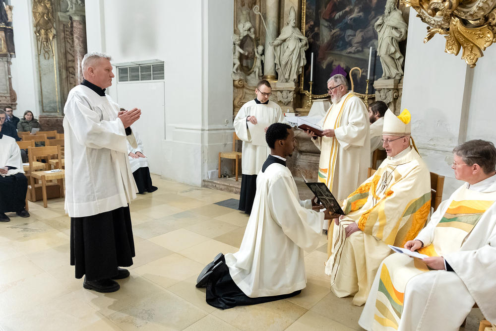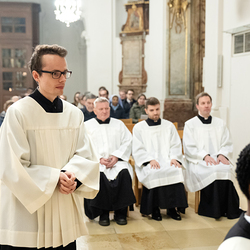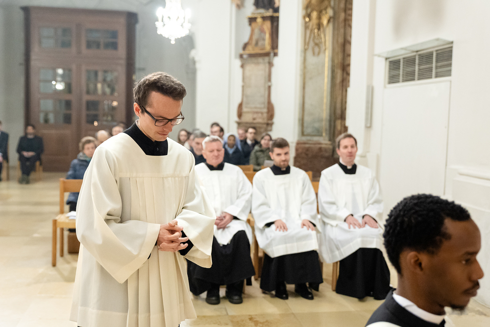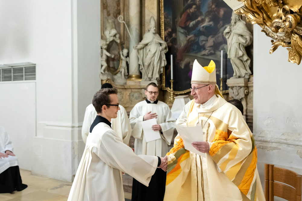 Im Rahmen einer Eucharistiefeier erhielten Seminaristen des Wiener Priesterseminars die Admissio, was "Zulassung" bedeutet.  Sie wurden offiziell als Kandidaten für das Weihesakrament anerkannt und bekräftigten ihre Bereitschaft, sich gewissenhaft auf den Dienst als Diakone und Priester vorzubereiten. Wir haben die Feier fotografisch begleitet.